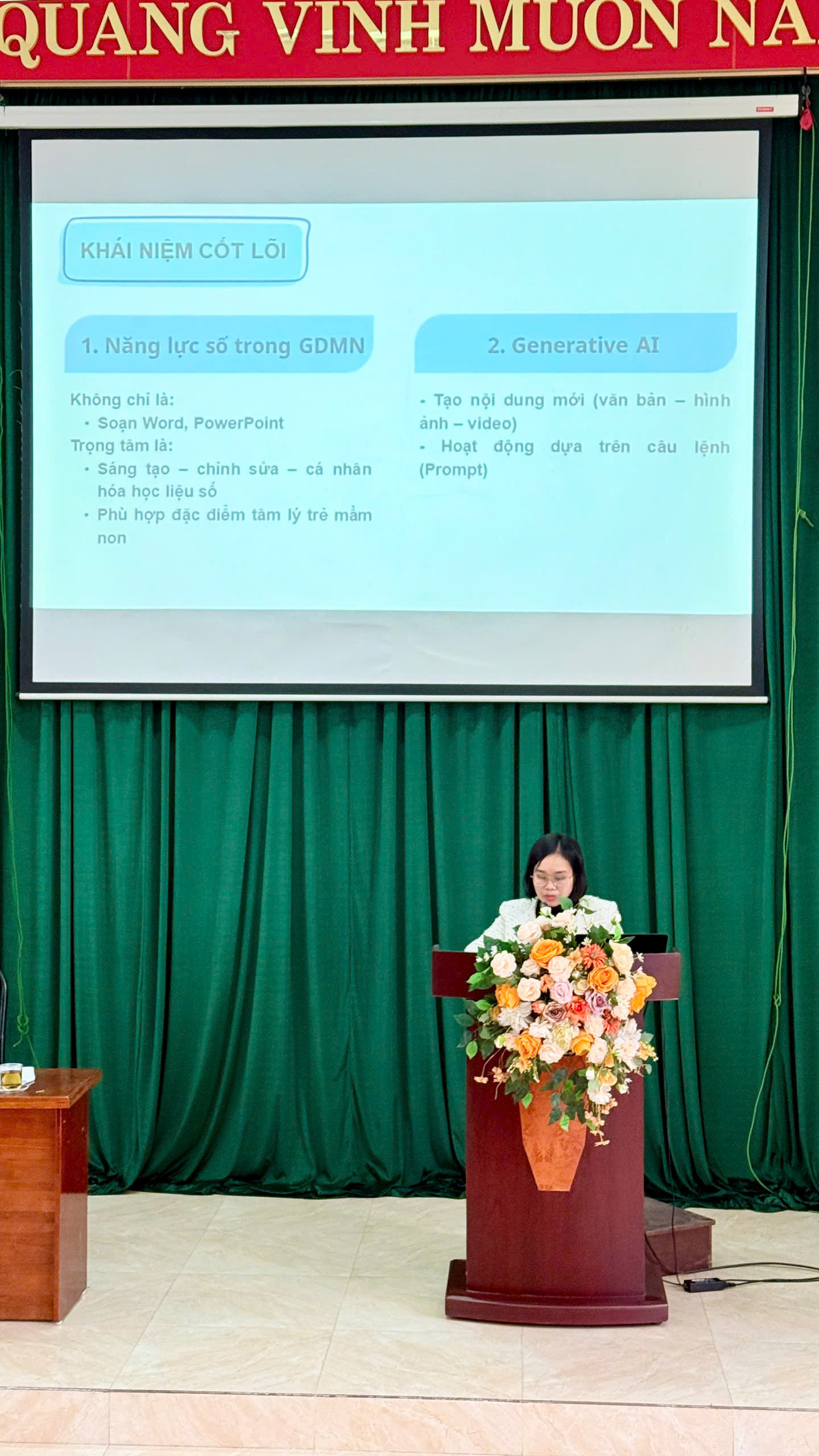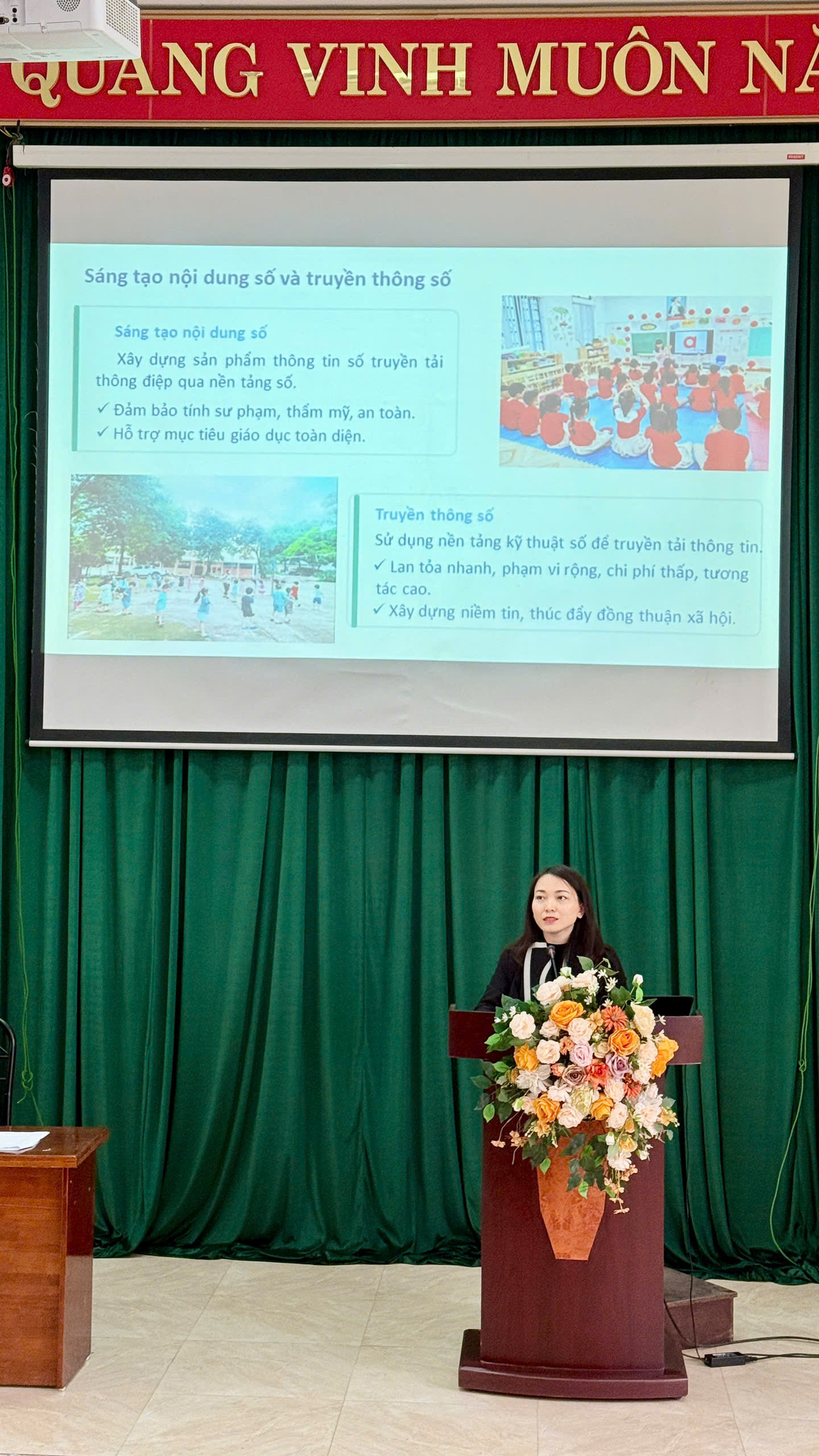 Báo cáo số 03: “Hoạt động sáng tạo nội dung số và truyền thông số để quảng bá cho các hoạt động của Cơ sở Giáo dục Mầm non Thực hành Hoa Sen” do Th.S Hoàng Ngọc Mai – Cơ sở GDMN Thực hành Hoa Sen trình bày, làm rõ vai trò của truyền thông số trong việc lan tỏa hình ảnh, nâng cao uy tín và hiệu quả hoạt động của cơ sở giáo dục mầm non.