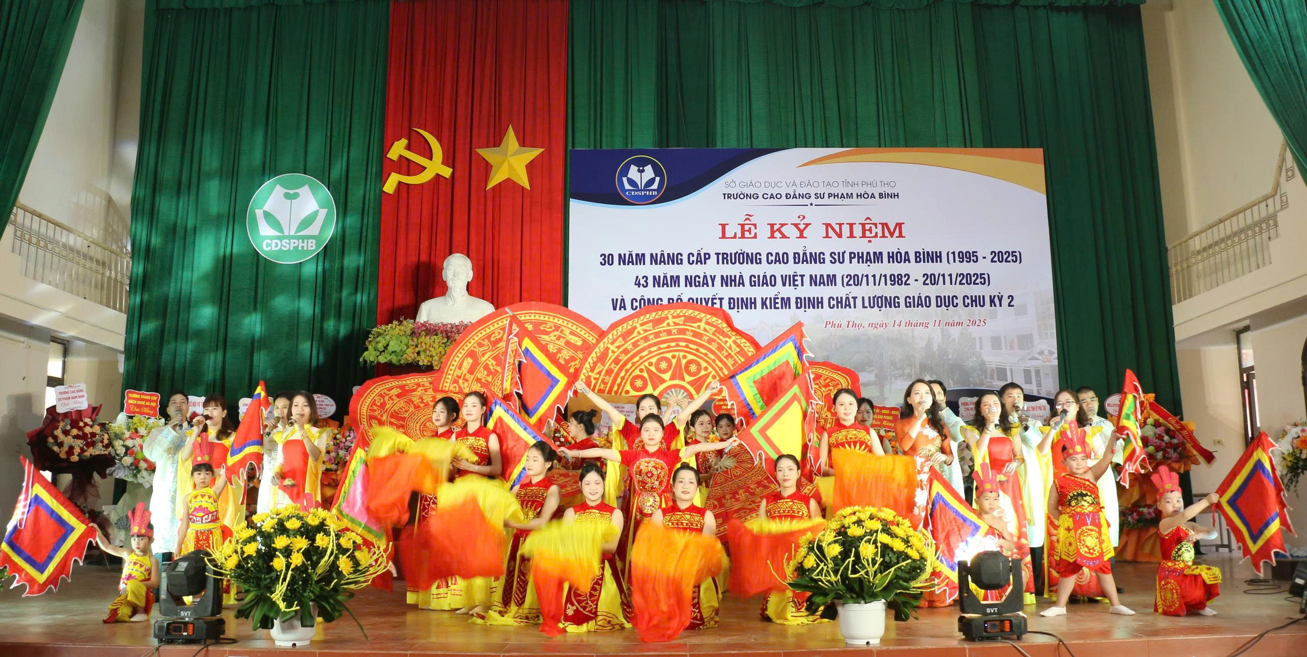 Hướng tới kỷ niệm 43 năm ngày Nhà giáo Việt Nam (20/11/1982 - 20/11/2025), Trường Cao đẳng Sư phạm Hòa Bình đã phát động phong trào thi đua “Dạy tốt - Học tốt” và tổ chức nhiều hoạt động thiết thực, bổ ích như: Hội thi giảng viên, giáo viên dạy giỏi, Hội thi nghiệp vụ sư phạm, Hội diễn văn nghệ chào tân sinh viên, thi đấu bóng đá, bóng chuyền… Các hoạt động đã tạo khí thế thi đua sôi nổi, rộng khắp trong toàn trường và tiếp tục thắp lên niềm tin, động lực, tình yêu với mái trường, với nghề dạy học cho các thầy giáo, cô giáo, các em học sinh, sinh viên, học viên. Nhân dịp này, Chủ tịch UBND tỉnh tặng Bằng khen cho Trường Cao đẳng Sư phạm Hòa Bình vì có thành tích xuất sắc trong phong trào thi đua chuyên đề; nhiều tập thể, cá nhân được nhà trường khen thưởng vì có thành tích xuất sắc trong đợt thi đua chào mừng 30 năm nâng cấp trường.