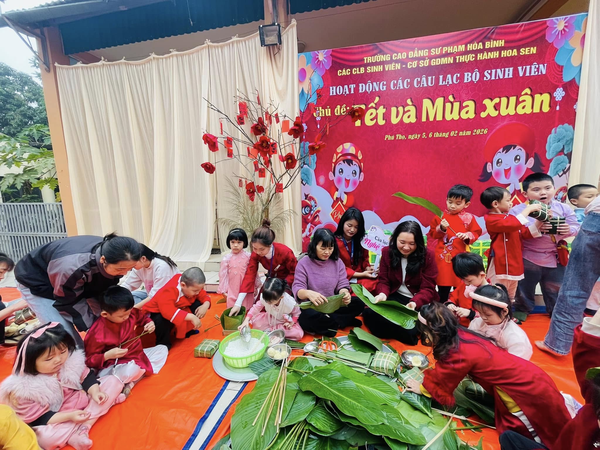 Cùng trong không khí xuân rộn ràng, Hoạt động “Tết và Mùa Xuân” do Cơ sở Giáo dục Mầm non Hoa Sen – đơn vị trực thuộc Trường Cao đẳng Sư phạm Hòa Bình – tổ chức đã mang đến một không gian Tết cổ truyền ấm áp, gần gũi cho trẻ mầm non.