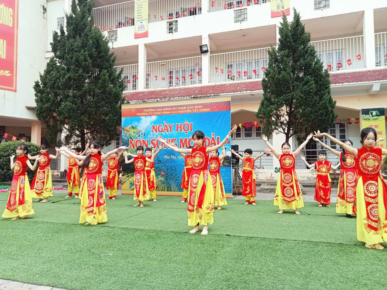 Nổi bật trong chuỗi hoạt động chào xuân là Ngày hội “Non sông non sông” do Trường Phổ thông Thực hành Chất lượng cao Nguyễn Tất Thành – đơn vị trực thuộc Trường Cao đẳng Sư phạm Hòa Bình – tổ chức. Ngày hội được thiết kế với nhiều nội dung phong phú như các hoạt động trải nghiệm lịch sử, tái hiện không gian văn hóa truyền thống, thi tìm hiểu về quê hương – đất nước, biểu diễn văn nghệ mang đậm sắc xuân dân tộc.